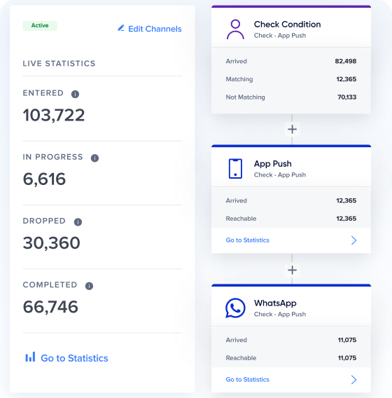 Connect data from different sources and build relevant one-to-one customer experiences across 12+ channels including WhatsApp, SMS, Email, Web, App, digital ads, and more – all from a single platform. Build consistent, timely, and relevant customer experiences across 12+ channels with Architect, Insider’s AI-native journey orchestration solution.