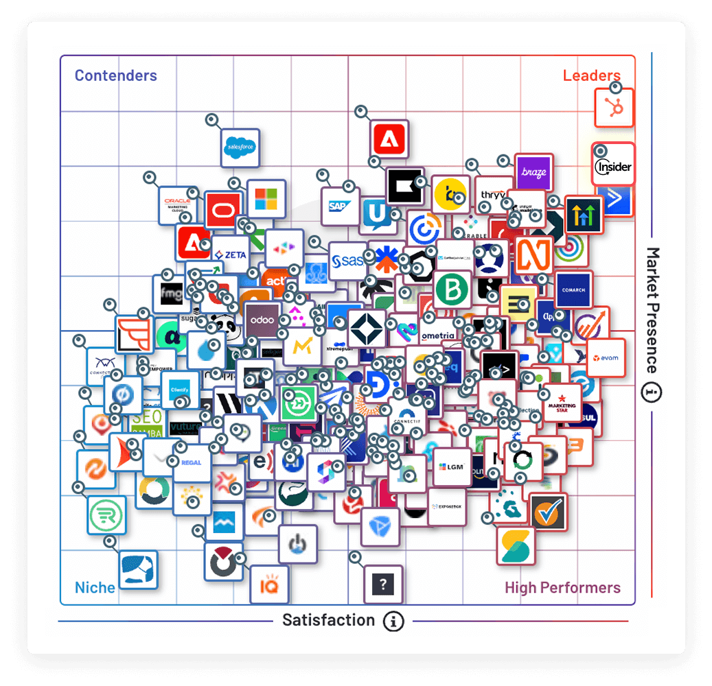 Insider scored 99/100 for its Integration capabilities—10% higher than the industry average. Sync customer, engagement, and product data across your entire tech stack with 100+ out-of-the-box integrations, including CRM, analytics, paid ads, social media, and more.