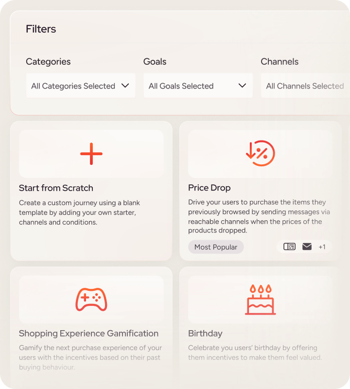 Access hundreds of tools and templates to quickly launch relevant, high-impact experiences while reducing costs, complexity, and reliance on developers.