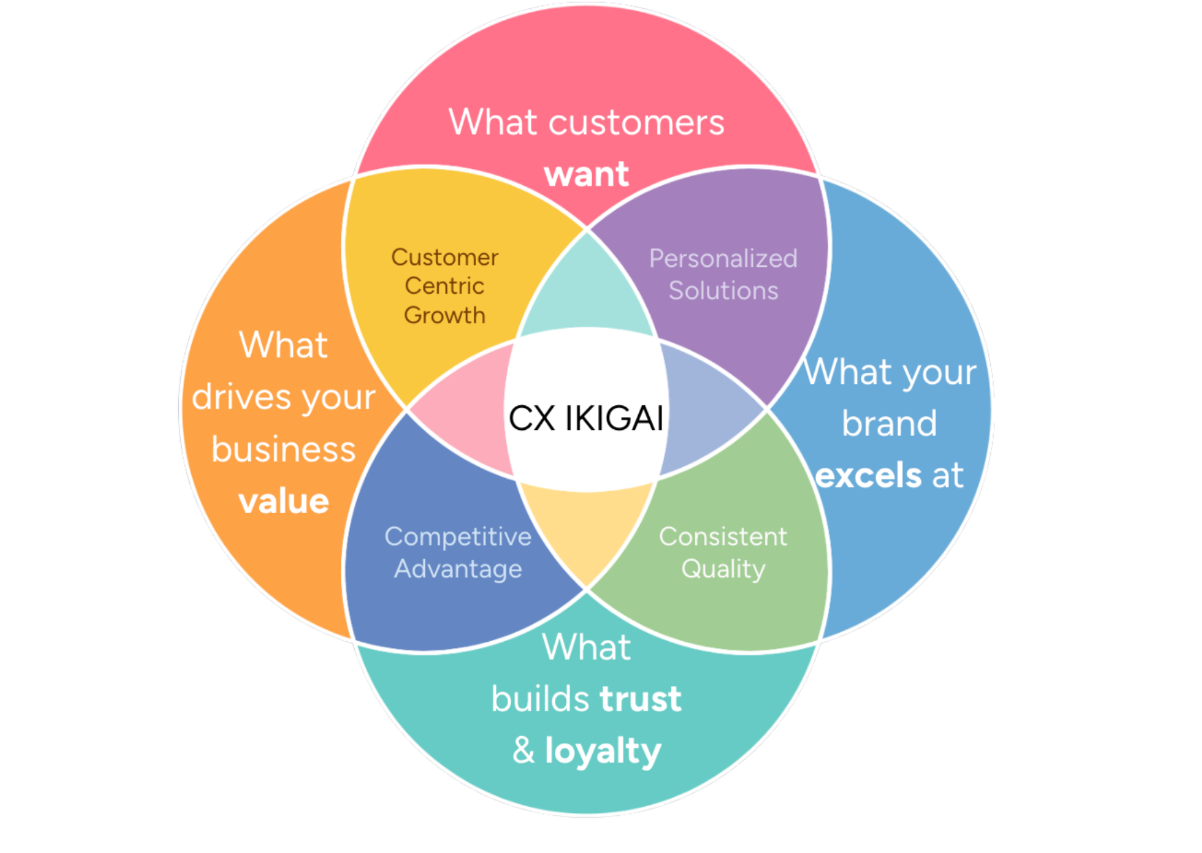 This is CX Ikigai: the intersection of what customers want, what your brand does best, and what drives growth.