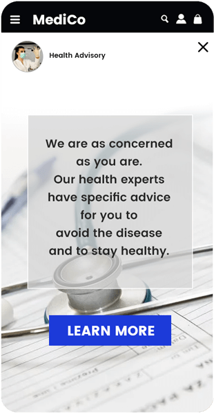 Patients may not be in a position to reach your hospital physically or they might not be able to reach you via usual contact numbers. In such cases, it’s important to inform them about any policy changes, testing procedures or emergency steps using website overlays and make sure visitors click and engage with your updates.