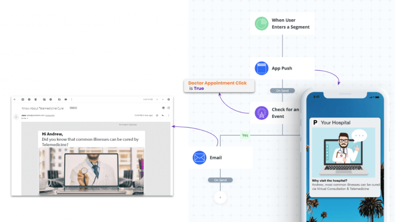 You can also build helpful customer journeys across multiple channels to promote teleconsultation.