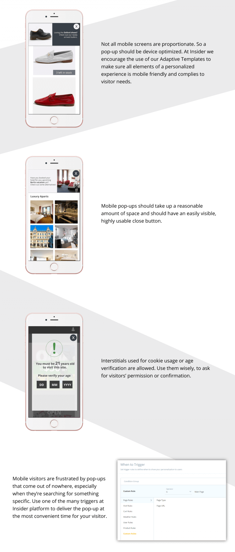 Other ranking factors are still relevant as we’ve known and practiced them to this day. Delivering personalized pop-ups or interstitials that are real time and based on the search intent is still one of the key factors determining the quality of mobile web experiences and indirectly your page’s ranking. At Insider One, we believe in delivering unique experiences and we make sure that every element that we deploy in the mobile web is aligned with visitor needs and Google principles.