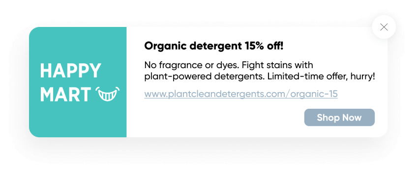 Send timely, relevant, and individualized price drop alerts with personalized rich push notifications. Let price-sensitive customers know when the product they're interested in goes on sale and nudge them to return to your site and buy.