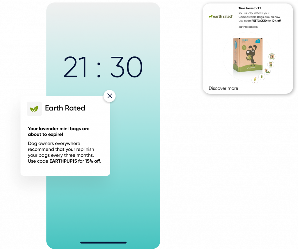 Send your customers replenishment reminders on and off-site to drive them back to your site, right before their favorite product is likely to run out.