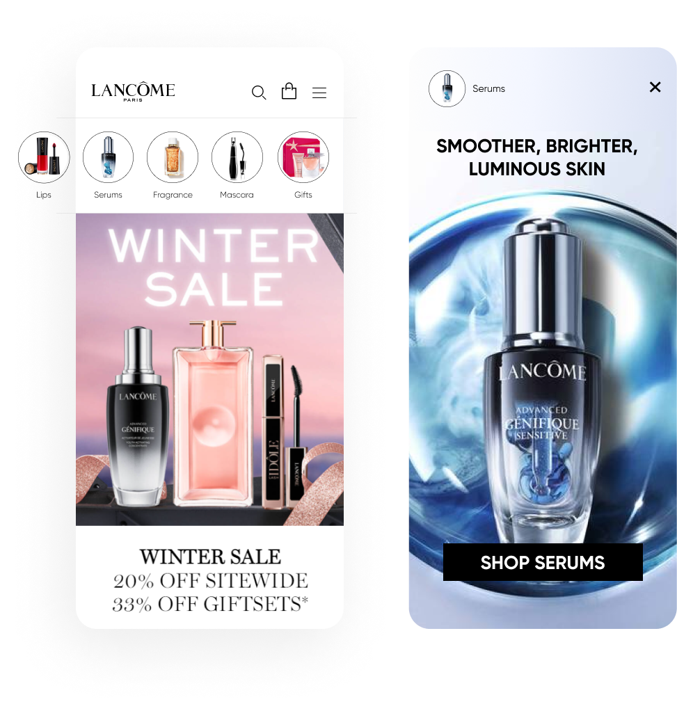 Attention spans are short. With InStory, you can capture your visitors’ imagination. Customize each story based on a visitor’s purchase history, real-time behavior, and predicted actions to reduce mobile bounce rates and help users find what they’re looking for.