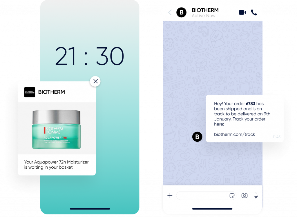 Utilise web push notifications, app push, WhatsApp, Facebook Messenger, Email, SMS and RCS