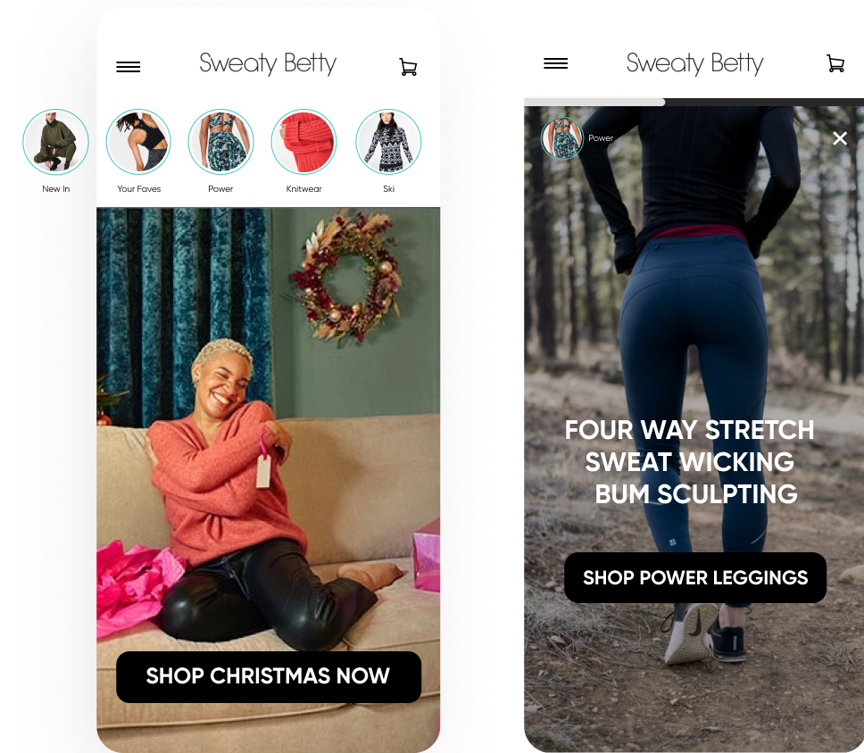Increase product discoverability through social-style navigation. With InStory, each thumbnail can be personalized to individual users’ interests or behavior, and expands into a full-screen immersive experience.