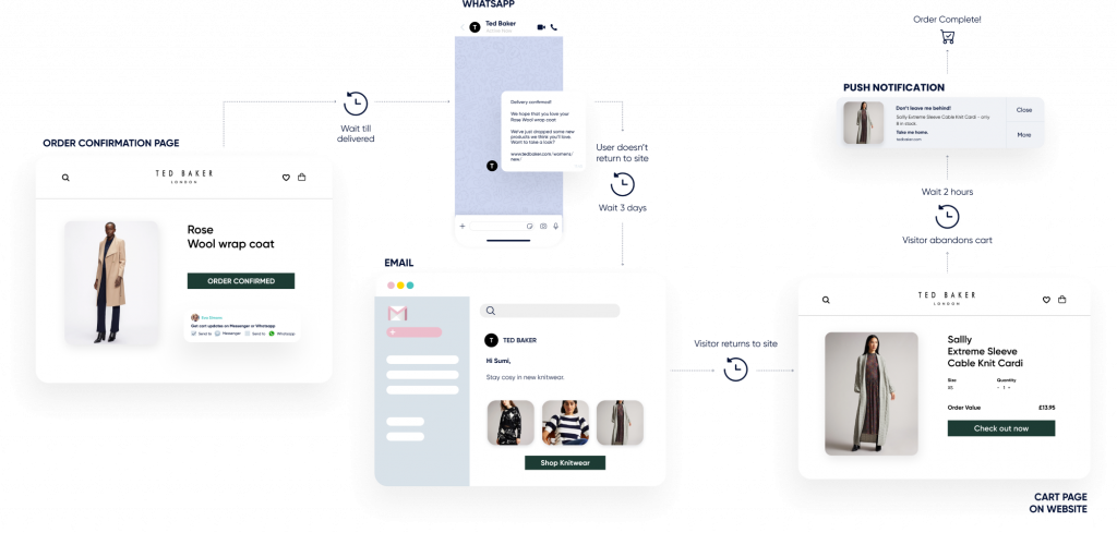 Utilise web push notifications, app push, WhatsApp, SMS and RCS as well as traditional email.