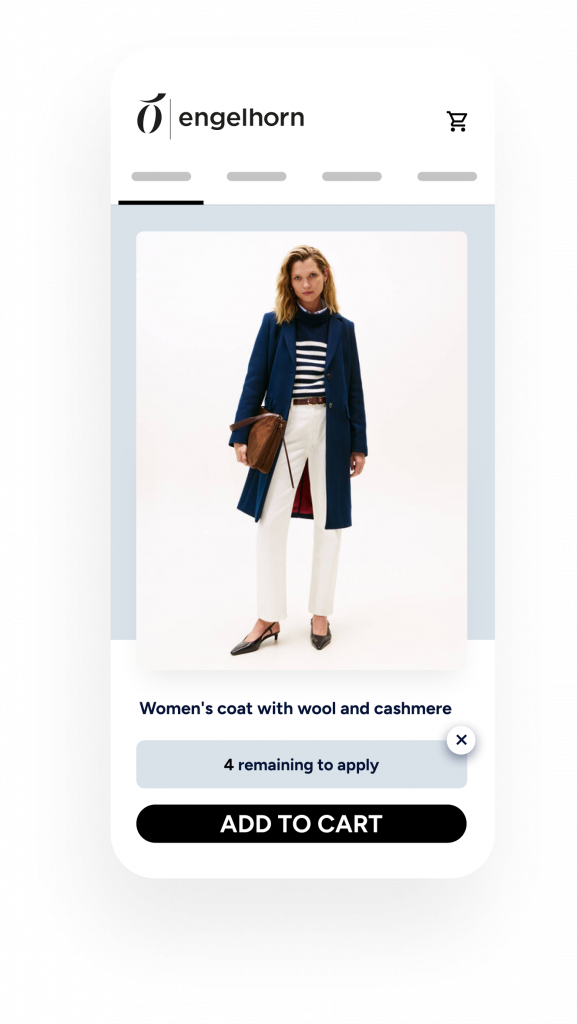 Die Aufmerksamkeitsspanne wird immer kürzer. Mit InStory fesseln Sie die Aufmerksamkeit Ihrer Besucher im richtigen Moment. Passe jede Story individuell an die Kaufhistorie, das Echtzeit-Verhalten und die vorhergesagten nächsten Schritte eines Besuchers an, um mobile Absprungraten zu senken und Nutzern schneller zu den passenden Inhalten zu führen. Sind Sie kein Designer? Kein Problem. Erstellen Sie immersive Fullscreen-Erlebnisse mit unserem Drag-and-drop-Editor. Ergänzen Sie Elemente wie Sticker oder Countdown-Timer, um Engagement und Conversions zu steigern.