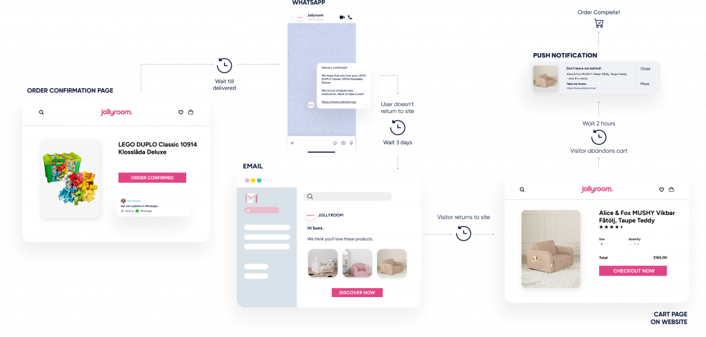 Remove the guesswork and hassle of piecing together incomplete data from disconnected systems and dashboards. Instead, create a CX which is seamless, and adapted to each customers’ behavior – What did they click? Buy? What’s the best channel to engage them?