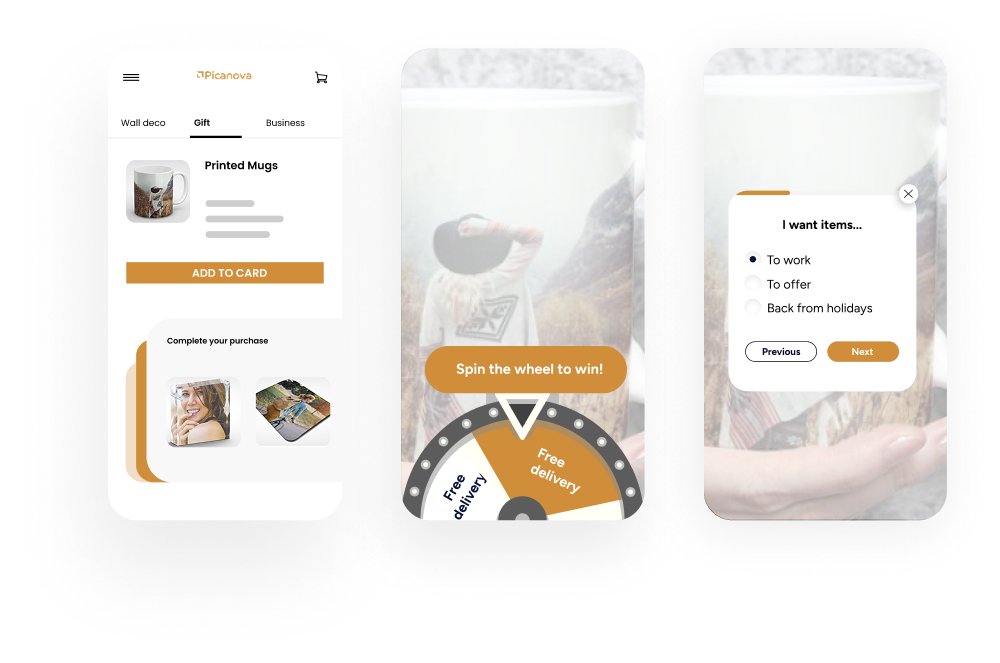 Not a designer? Not a problem. Create immersive full screen experiences with our drag-and-drop editor. Add flourishes like stickers and countdown timers to boost engagement and conversions.