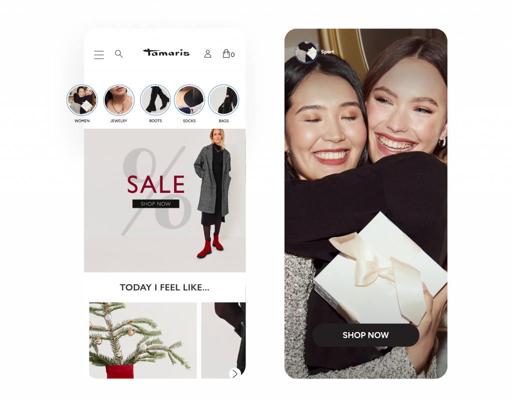 Die Aufmerksamkeitsspanne wird immer kürzer. Mit InStory fesseln Sie die Aufmerksamkeit Ihrer Besucher im richtigen Moment. Passe jede Story individuell an die Kaufhistorie, das Echtzeit-Verhalten und die vorhergesagten nächsten Schritte eines Besuchers an, um mobile Absprungraten zu senken und Nutzern schneller zu den passenden Inhalten zu führen. Sind Sie kein Designer? Kein Problem. Erstellen Sie immersive Fullscreen-Erlebnisse mit unserem Drag-and-drop-Editor. Ergänzen Sie Elemente wie Sticker oder Countdown-Timer, um Engagement und Conversions zu steigern.