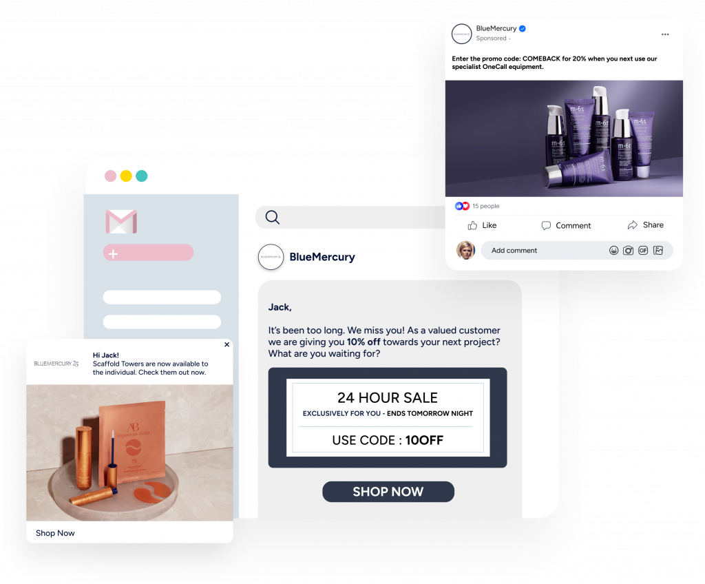Remove the guesswork and hassle of piecing together incomplete data from disconnected systems and dashboards. Instead, create a CX which is seamless, and adapted to each customers’ behavior – What did they click? Buy? What’s the best channel to engage them?