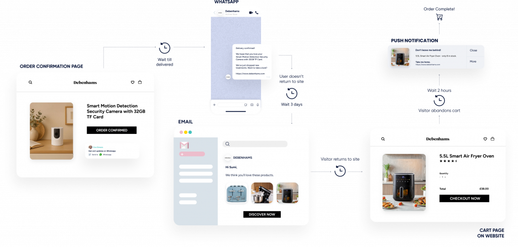 Remove the guesswork and hassle of piecing together incomplete data from disconnected systems and dashboards. Instead, create a CX which is seamless, and adapted to each customers’ behavior – What did they click? Buy? What’s the best channel to engage them?