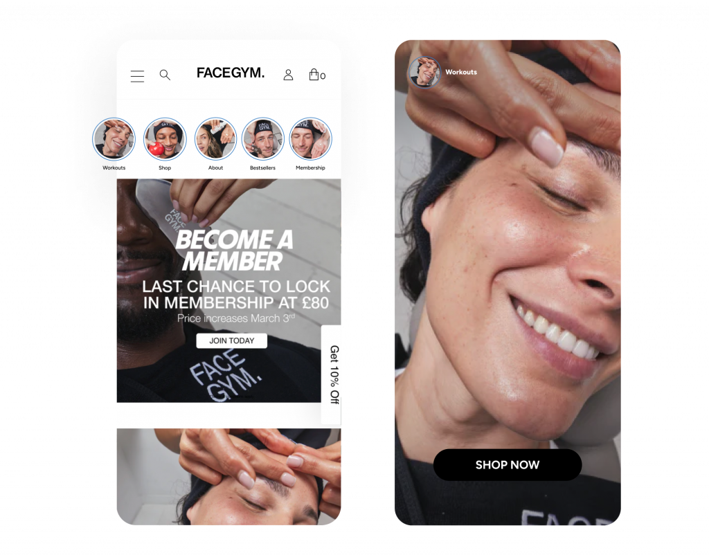 Not a designer? No problem. Create immersive full screen experiences with our drag-and-drop editor. Add flourishes like stickers and countdown timers to boost engagement and conversions.