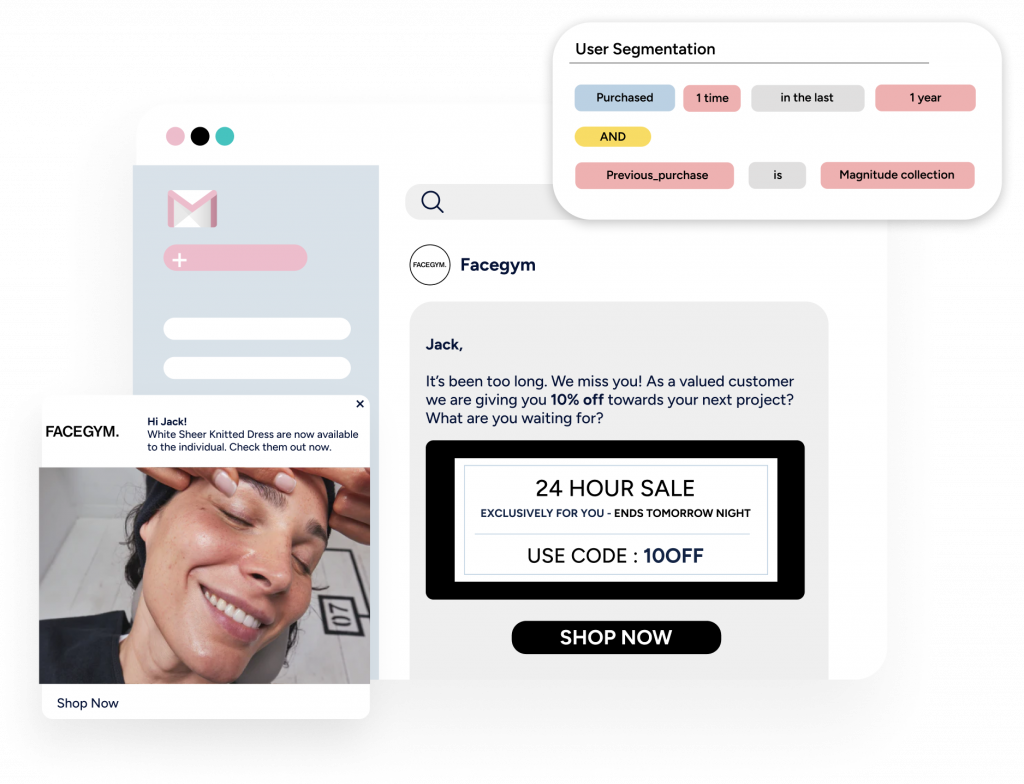 Remove the guesswork and hassle of piecing together incomplete data from disconnected systems and dashboards. Instead, create a CX which is seamless, and adapted to each customers’ behavior – What did they click? Buy? What’s the best channel to engage them?
