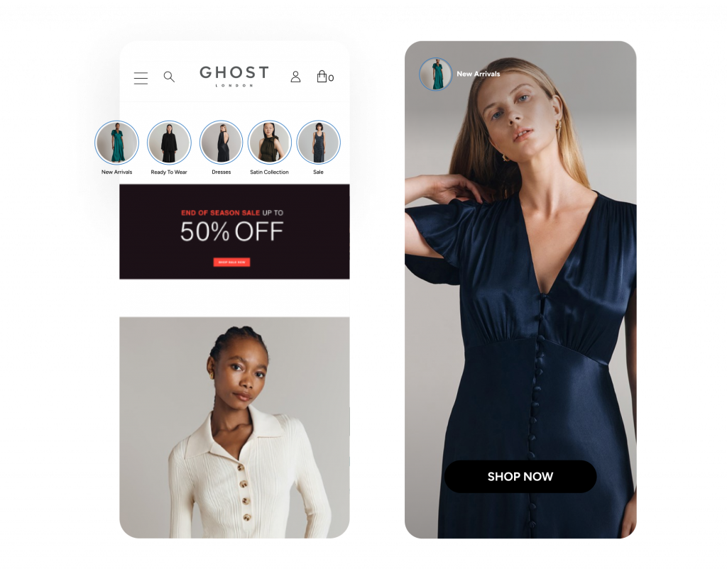 Attention spans are short. With InStory, you can capture your visitors’ imagination. Customize each story based on a visitor’s purchase history, real-time behavior, and predicted actions to reduce mobile bounce rates and help users find what they’re looking for.