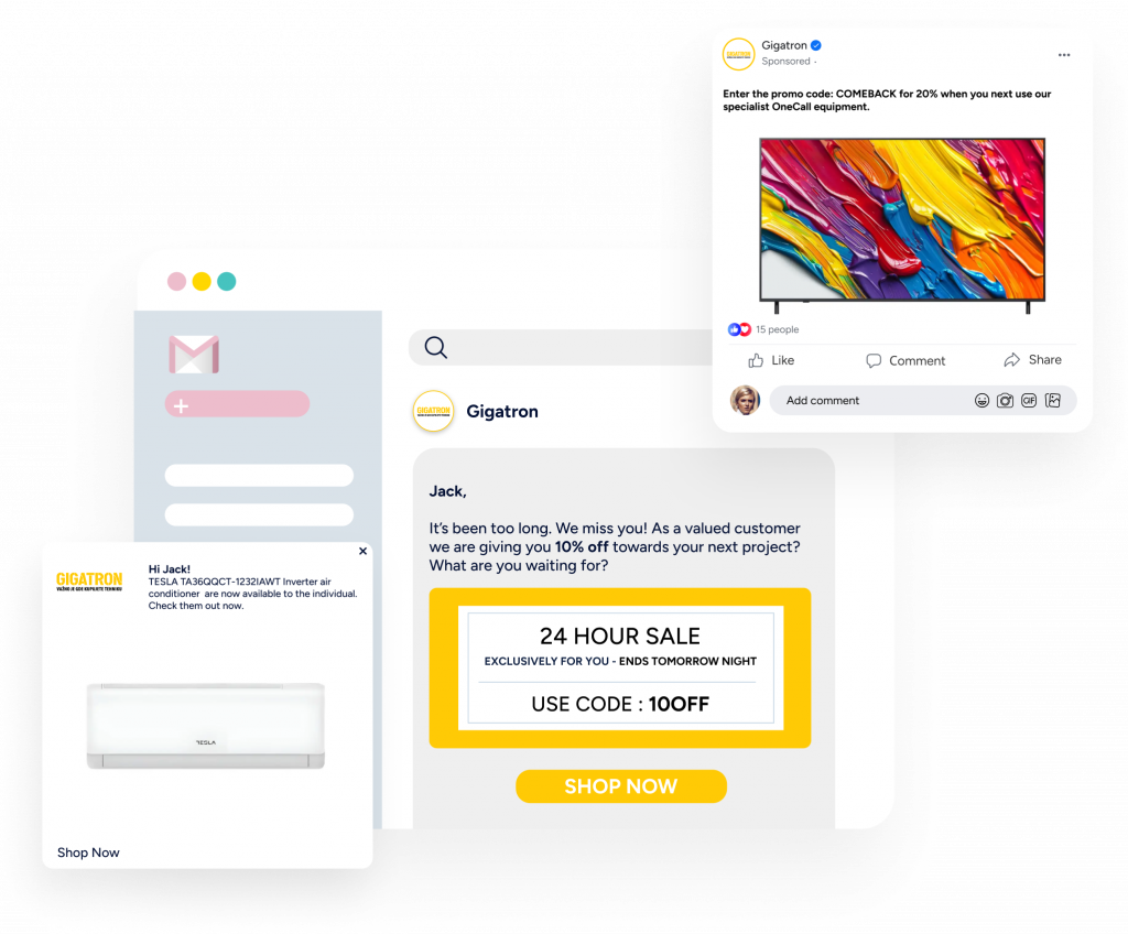 Remove the guesswork and hassle of piecing together incomplete data from disconnected systems and dashboards. Instead, create a CX which is seamless, and adapted to each customers’ behavior – What did they click? Buy? What’s the best channel to engage them?