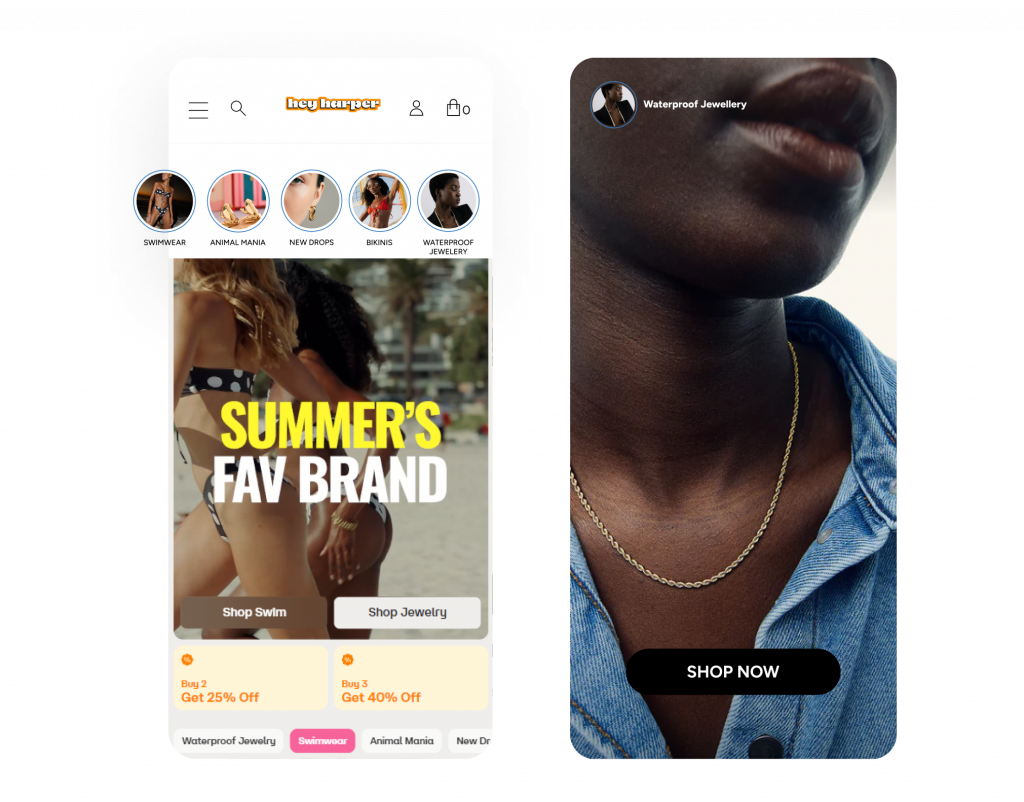 Not a designer? No problem. Create immersive full screen experiences with our drag-and-drop editor. Add flourishes like stickers and countdown timers to boost engagement and conversions.