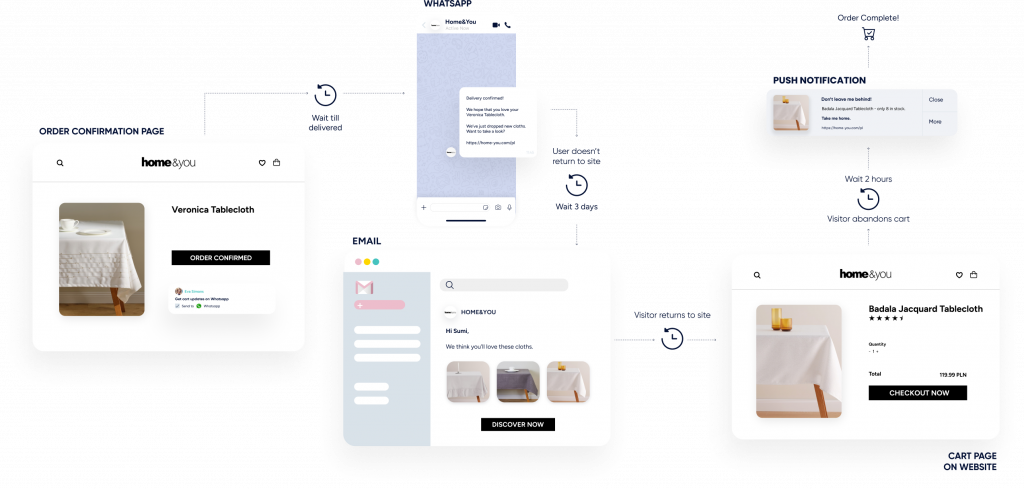 Remove the guesswork and hassle of piecing together incomplete data from disconnected systems and dashboards. Instead, create a CX which is seamless, and adapted to each customers’ behavior – What did they click? Buy? What’s the best channel to engage them?