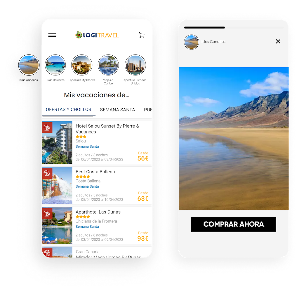 Aumenta la visibilidad y mejora el descubrimiento de productos a través de la navegación como en redes sociales. Con InStory, puedes personalizar stories según los intereses o el comportamiento de los usuarios; las imágenes se expanden en una experiencia inmersiva que tus clientes amarán.