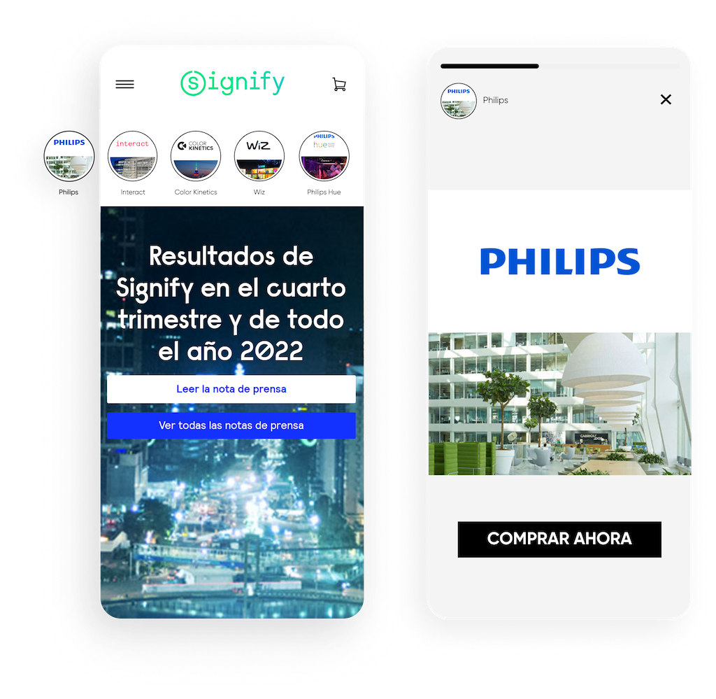 Aumenta la visibilidad y mejora el descubrimiento de productos a través de la navegación como en redes sociales. Con InStory, puedes personalizar stories según los intereses o el comportamiento de los usuarios; las imágenes se expanden en una experiencia inmersiva que tus clientes amarán.