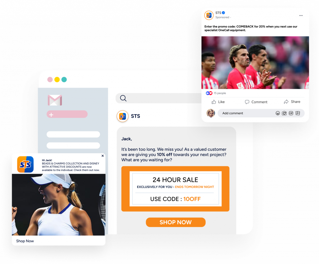 Remove the guesswork and hassle of piecing together incomplete data from disconnected systems and dashboards. Instead, create a CX which is seamless, and adapted to each customers’ behavior – What did they click? Buy? What’s the best channel to engage them?