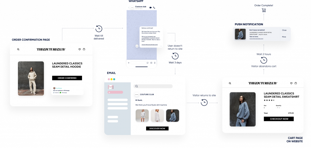 Remove the guesswork and hassle of piecing together incomplete data from disconnected systems and dashboards. Instead, create a CX which is seamless, and adapted to each customers’ behavior – What did they click? Buy? What’s the best channel to engage them?