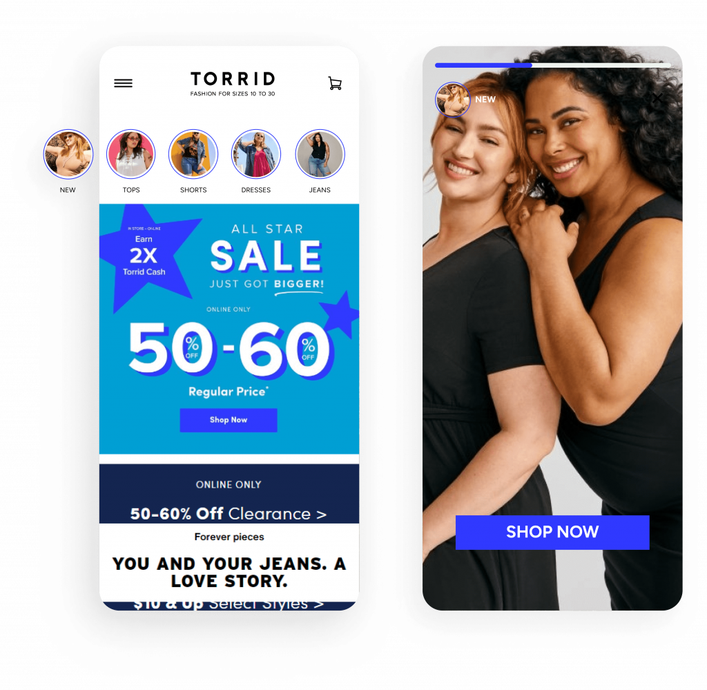 Attention spans are short. With InStory, you can capture your visitors’ imagination. Customize each story based on a visitor’s purchase history, real-time behavior, and predicted actions to reduce mobile bounce rates and help users find what they’re looking for.