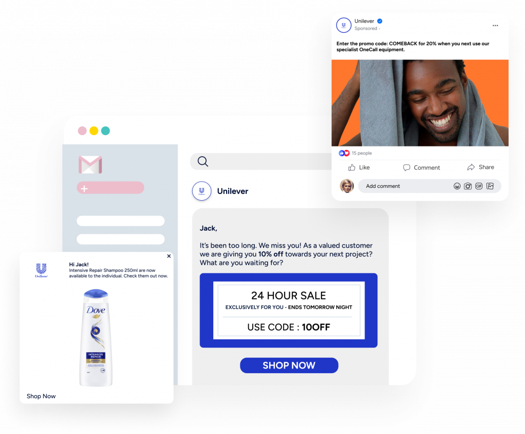 Remove the guesswork and hassle of piecing together incomplete data from disconnected systems and dashboards. Instead, create a CX which is seamless, and adapted to each customers’ behavior – What did they click? Buy? What’s the best channel to engage them?