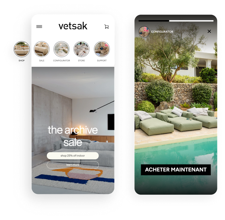 Attention spans are short. With InStory, you can capture your visitors’ imagination. Customize each story based on a visitor’s purchase history, real-time behavior, and predicted actions to reduce mobile bounce rates and help users find what they’re looking for.