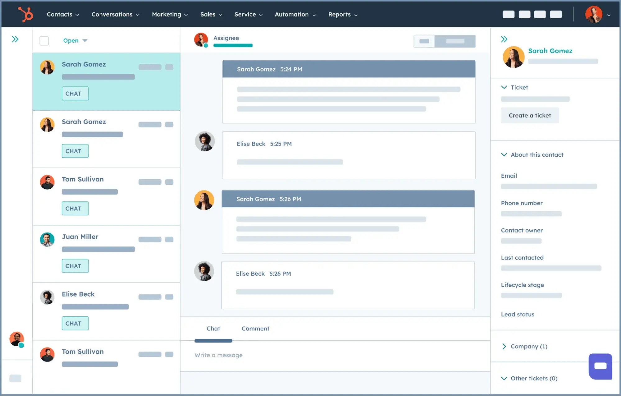 HubSpot is a unified platform that connects CRM, marketing, sales, and service, giving teams shared customer data. Marketing Hub handles email, SMS, social, and chat campaigns, while Service Hub provides AI-powered omnichannel support.
