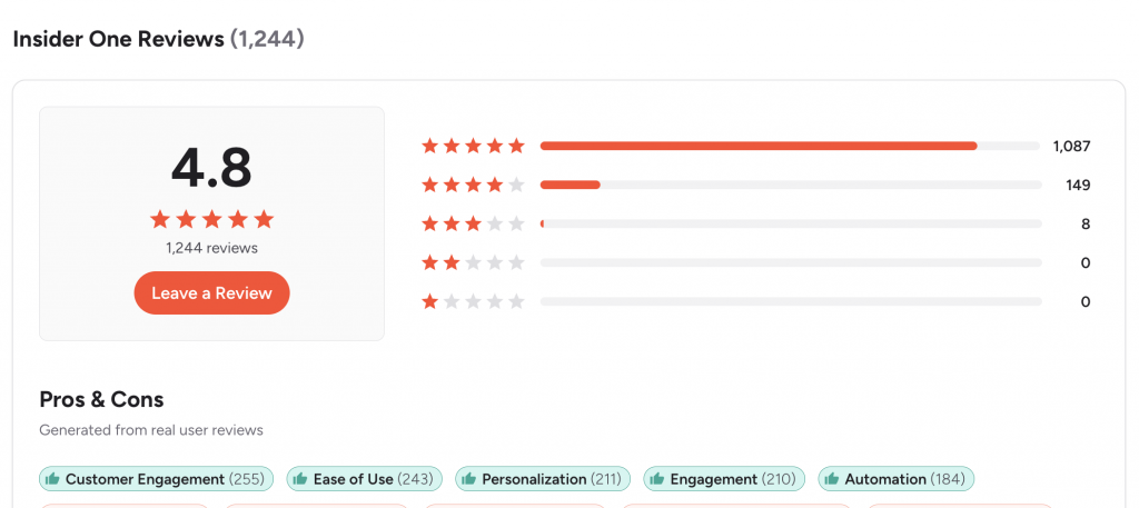 Insider One is also among the leaders in various categories based on reviews from customers and industry experts, including: