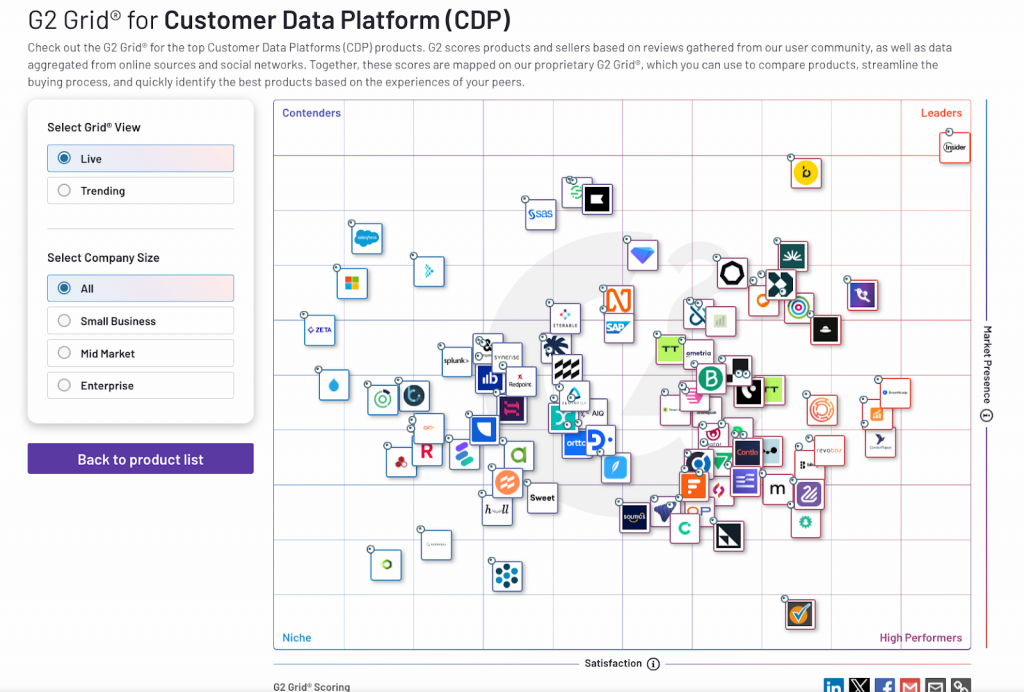Insider One is also a leader in terms of time-to-value, ease of setup, and ease of use. As a result, it has been ranked as a top solution by G2, Gartner, Forrester, and IDC across many categories that Klaviyo and Salesforce also participate in, like: