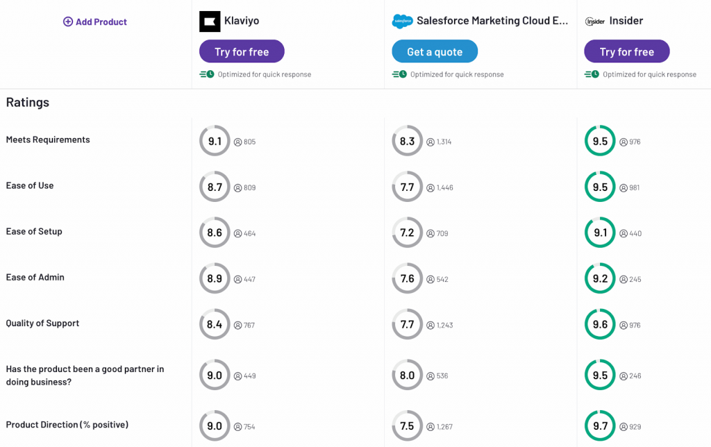 You can also see how customers rate Insider One compared to Klaviyo and Salesforce below.