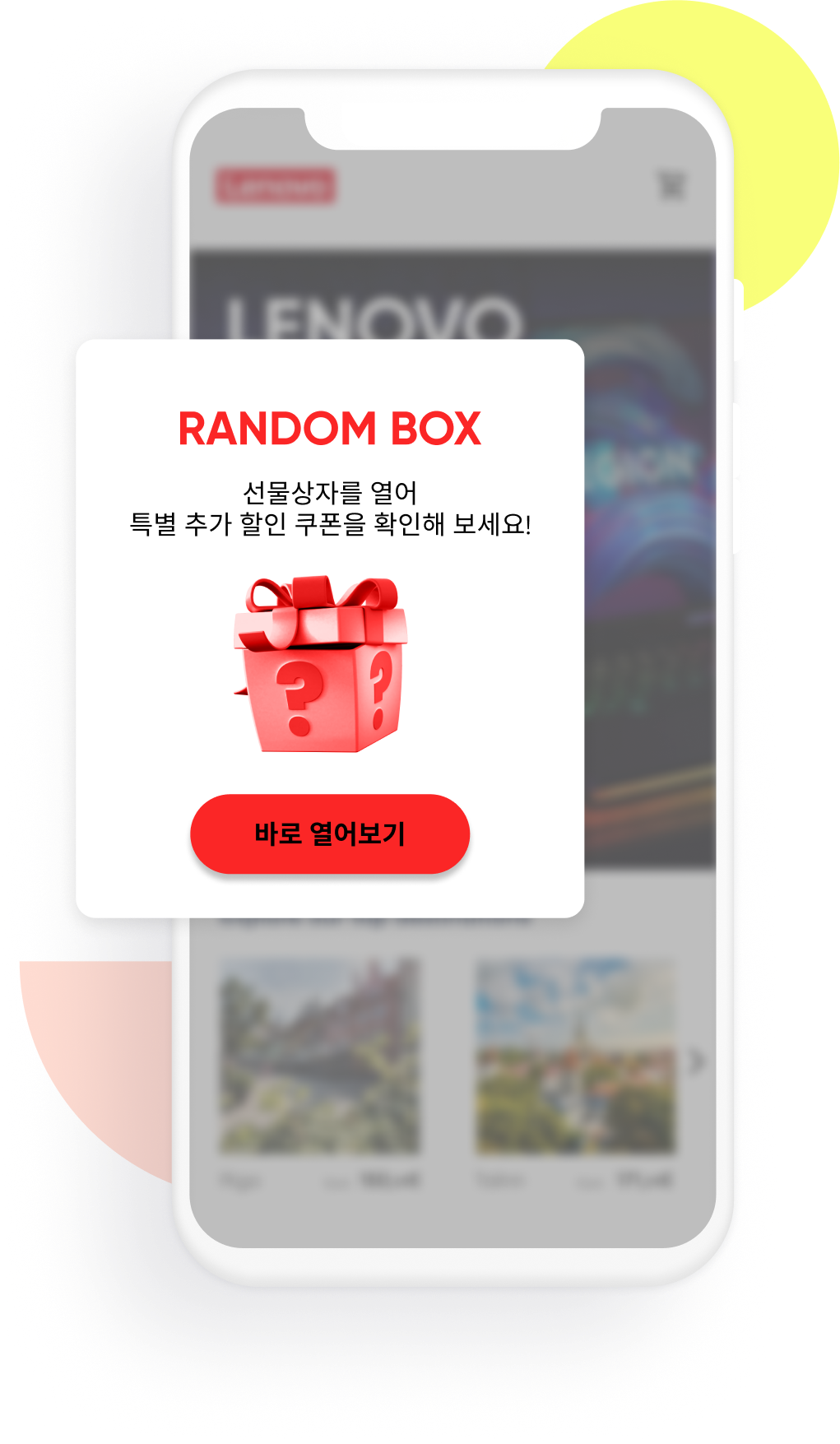 레노버는 인사이더의 게임화된 템플릿 중 하나인 랜덤박스를 활용한 캠페인을 진행했습니다. ‘꽝’부터 1%, 2%, 3%까지 다른 할인율이 부여된 4가지 쿠폰 코드가 담긴 랜덤박스를 고객이 클릭하는 순간, 쿠폰 코드가 랜덤으로 발급되도록 설정했습니다. 그리고 랜덤 박스를 한 번 열어본 고객은 3일 후에 다시 열어볼 수 있도록 제한했습니다. 게임의 재미를 더한 이 캠페인은 평균 6% 이상의 클릭률을 기록하며 고객 인게이지먼트를 높이는 데 성공했을 뿐만 아니라 고객의 최종 구매까지 촉진할 수 있었습니다.