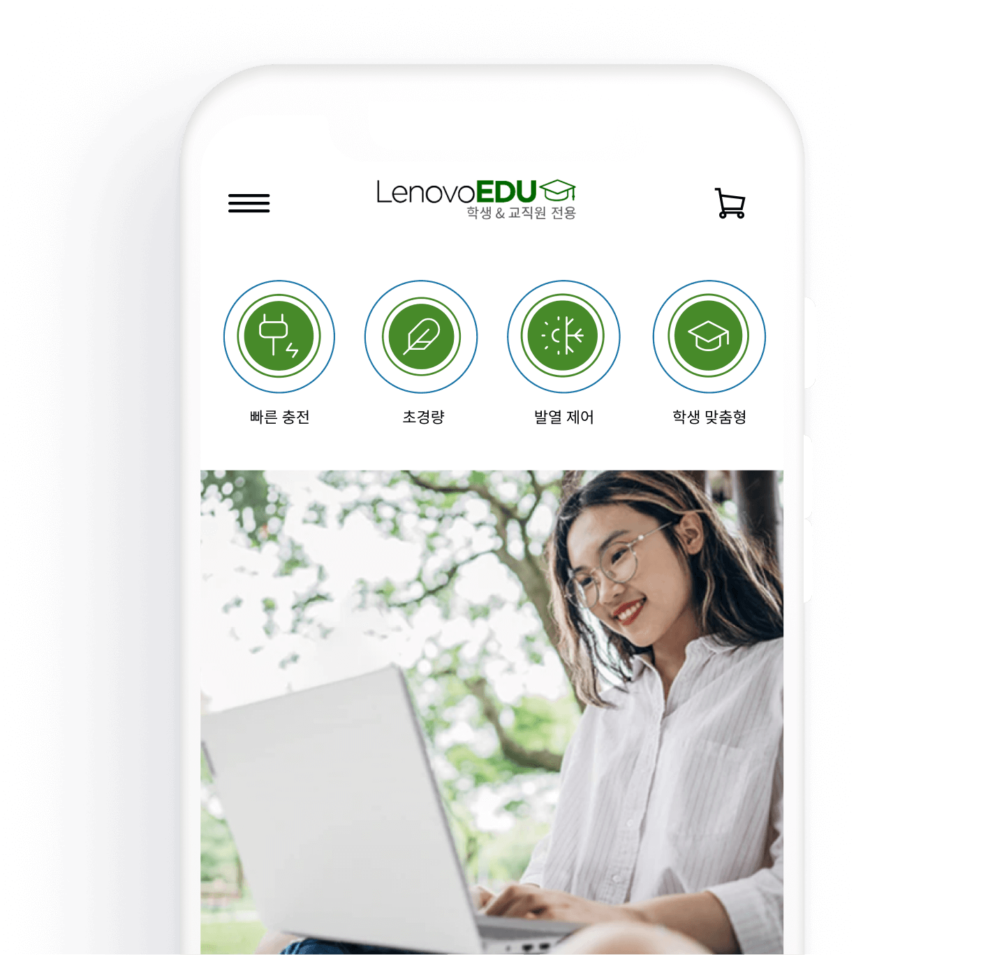 인사이더의 InStory 기능은 인스타그램 스토리와 유사한 인터페이스로 학생 고객과의 인게이지먼트를 효과적으로 개선할 수 있었습니다. Lenovo EDU는 ‘빠른 충전’, ‘학생 맞춤형’, ‘스마트 테크놀리지’ 등 학생들이 관심 있는 스펙 및 특정 카테고리를 스토리 형태로 묶어 메인 페이지에 진열했습니다. 관심 스토리의 썸네일을 클릭한 학생들은 소셜 플랫폼에서와 같이 화면 탭을 통해 자세한 정보를 확인해 볼 수 있어 온사이트 몰입도를 끌어올리는데 긍정적인 효과를 얻을 수 있었습니다.