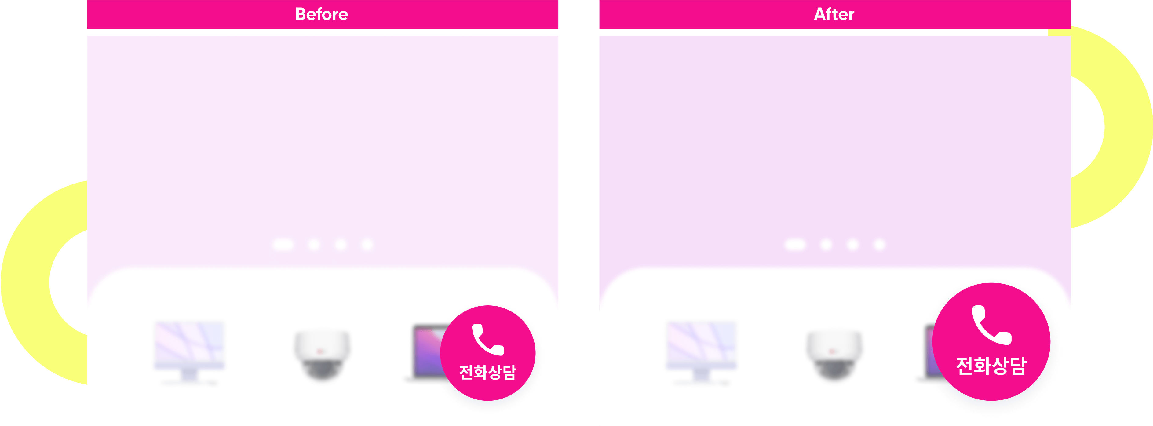 기업 고객이 최종적으로 상품을 선택하고 계약을 완료 하기 위해선 상담이 필수적입니다. 때문에 소상공인 전용몰은 최소한의 심리적 저항으로 유저를 상담까지 이끄는 적합한 넛지를 웹사이트 곳곳에 배치했습니다. 소상공인 전용몰은 인사이더 어카운트 매니저와 함께 약 10일 동안 빠르고 안정적으로 다양한 넛지를 구현할 수 있었습니다. 리드 확보에 매우 중요한 ‘전화상담’ CTA의 버튼 크기가 작아 눈에 잘 띄지 않는다는 내부 의견을 반영해 다양한 크기의 CTA 버튼으로 ABN테스트를 진행한 결과 ‘전화 상담’ 버튼 클릭률이 약 50% 증가하는 효과를 볼 수 있었습니다. 나아가, 상품 카테고리 페이지 내 상품 리스트 영역에 ‘상세보기’ CTA를 추가하는 캠페인 등 전환율을 극대화 시킬 수 있는 디테일한 넛지를 심어줌으로써 유저로 부터 특정 행동을 성공적으로 유도할 수 있었습니다.