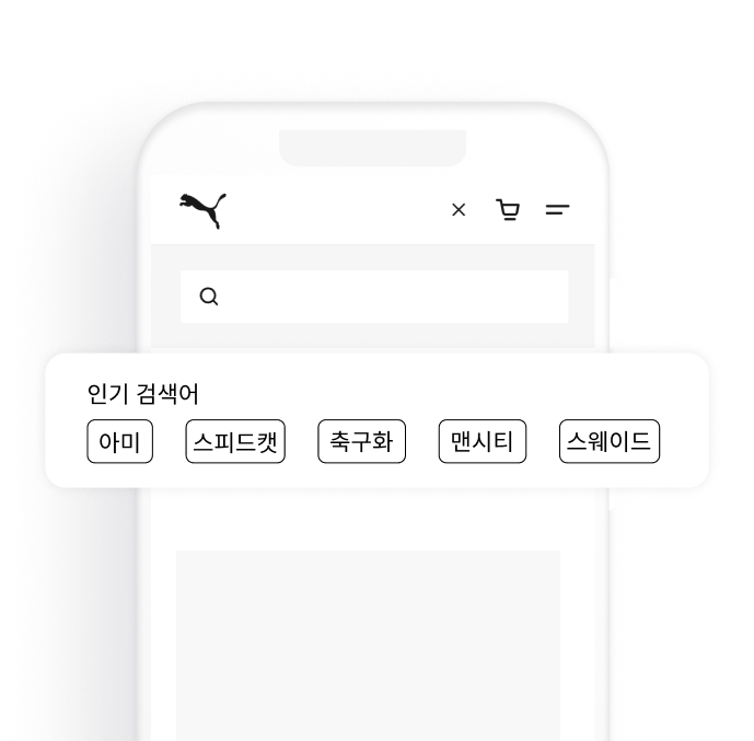 푸마는 인사이더의 ‘탑 서치(Top Search)’ 기능을 적용시켜 ‘아미’, ’맨시티’, ’축구화’, ‘스웨이드’ 등 인기 검색어 및 카테고리 키워드 태그를 검색 엔진 바로 밑에 배치하고 유저가 태그를 클릭하면 바로 검색 결과 페이지에 진입하도록 설정했습니다. 푸마는 인사이더 어카운트 매니저의 지원으로 첫 탑 서치 캠페인을 단 한 시간 만에 신속하게 런칭 할 수 있었습니다.