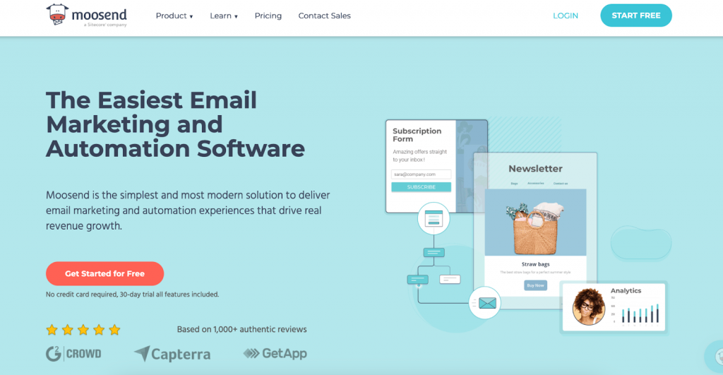 Moosend is an email marketing and automation software for small and mid-sized businesses that was acquired by Sitecore. It offers a suite of tools for email marketing, marketing automation, audience segmentation, and more. Moosend also has various reporting and analytics features for tracking the success of marketing campaigns, as well as an option for building custom reports.