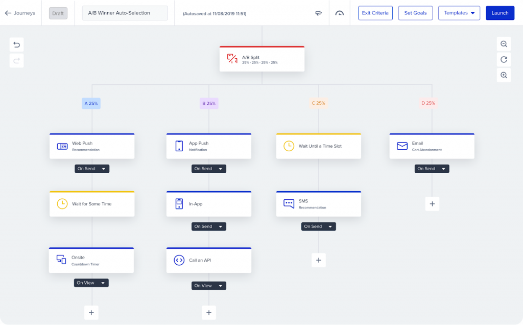 You can also compare the performance of two or more variations of a journey with our A/B Split Testing features.