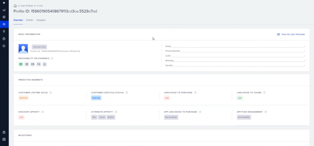 Note: If you’re not familiar with CDPs and their importance for the personalization process, check out our detailed article on the 7 best CDPs in 2023.Insider One also creates unified, 360-degree profiles of all customers, as shown below.