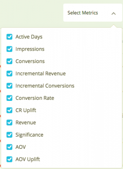 If you want to focus only on a few key ROI metrics (say incremental revenue), you have the option to select/deselect key metrics for displaying as columns in your campaign ROI tracking dashboard.