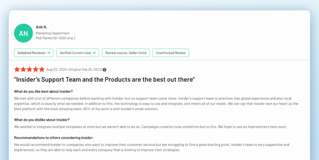 As one Insider One partner shared: “The implementation process was incredibly smooth. Their team supported us at every step, leaving no questions unanswered.”
