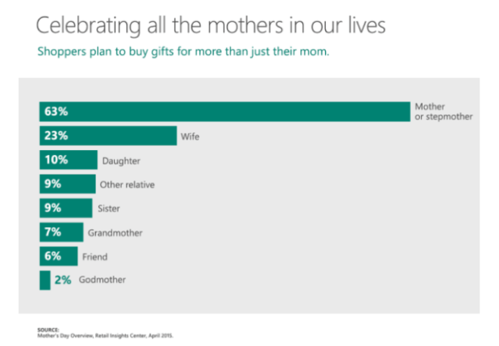 Mother’s Day is by no means limited to mothers and children. Retail Insight Center’s research shows that shoppers buy for their daughters, wives, sisters, and even for their friends. In a way, the day becomes an opportunity to celebrate motherhood in general.