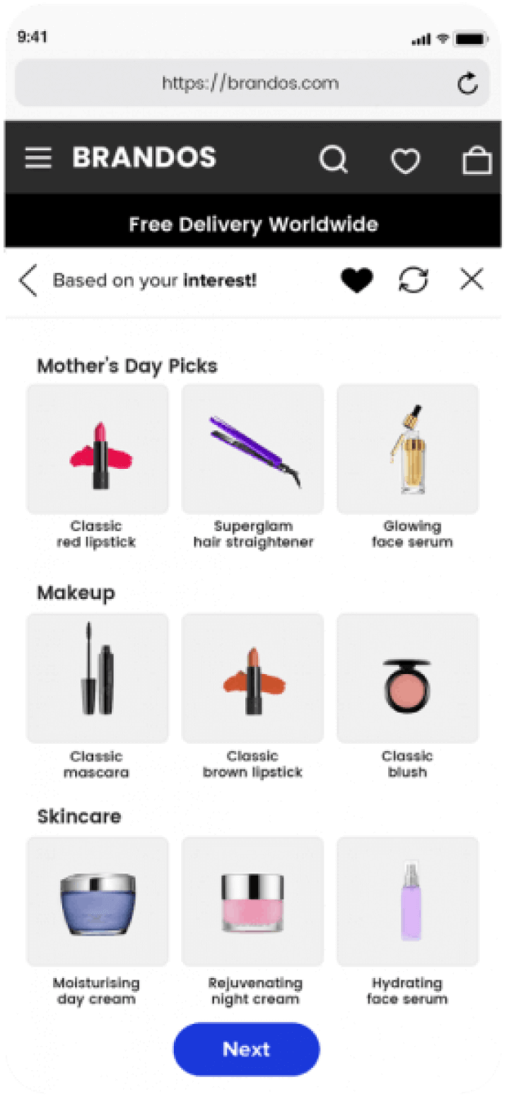 We all know how hard it can be to choose perfect gifts for our loved ones, year after year. As marketers, you can help out your customers by asking them quick questions and leading them to relevant products. With Insider One’s AI-backed product recommendation engine Maven you can easily recommend products to your customers, speed up product discovery and improve mobile web experiences while driving conversions. You can first ask your customers to pick the categories they’re interested in, let them choose the keywords that match their search. Then ask their price range and recommend them the products they might be looking for. With their simple answers, you get to understand visitor intent and act on it by delivering interest-based recommendations and offering personalized shopping experiences. It’s a piece of cake— both for you and your customers.