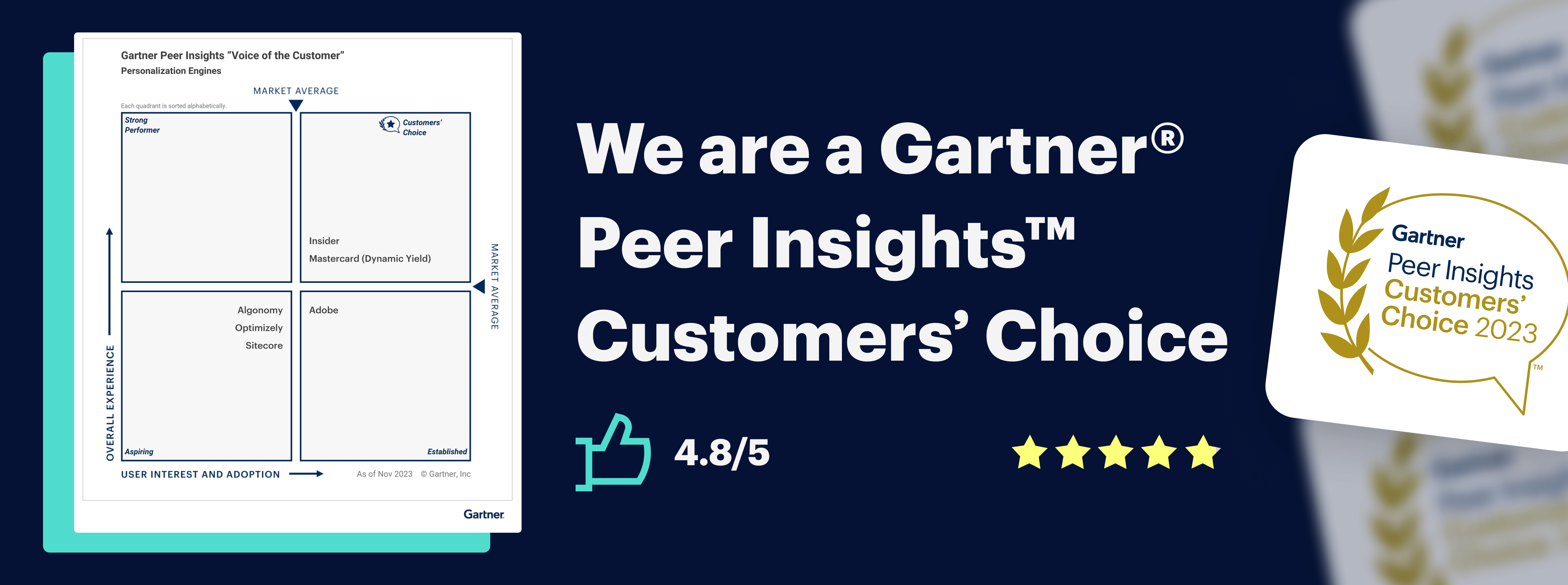 Insider One today announced its recognition as a Customers’ Choice in the 2023 Gartner Voice of the Customer for Personalization Engines report, with the highest overall customer rating (4.8/5) as of February 15, 2024. Having been a Leader in the Gartner® Magic Quadrant™ for Personalization Engines for the past three years, Insider One earned this additional distinction of being recognized as a Customers’ Choice on Gartner® Peer Insights™ — coming directly from the reviews of customers who have used Insider One and seen strong ROI.