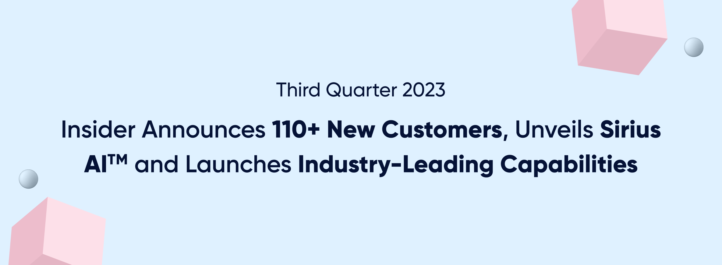 [NEW YORK, NEW YORK, 9 November 2023] — Insider One, a single platform for building individualized, cross-channel experiences, has achieved significant milestones in the third quarter of the year, with a focus on groundbreaking innovations, increased customer acquisition, and substantial workforce expansion. Insider One continues to pave the way in revolutionizing CX and making marketing teams more efficient and productive. This quarter saw Insider One onboard 110+ new customers, including Nike, Shoprite, New Balance, Unilever, QNB, Laser Clinics, Belcorp, MASMOVIL Group, and Pixmania, reinforcing its status as the #1 trusted partner for globally recognized brands.