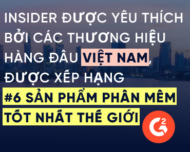 Được tin tưởng bởi những thương hiệu hàng đầu Việt Nam, bao gồm Concung, Vin Group, và MB Bank, Insider One được xếp hạng #6 trong báo cáo Spring’23 của G2, (với nhiều xếp hạng đứng đầu nhất trong số các nhà cung cấp phần mềm), đồng hành cùng những nhà cung cấp phần mềm nổi tiếng như Hubspot, Monday.com, Zoom, và GitHub. Với hiệu suất xuất sắc và sự hài lòng vượt trội của người dùng, Insider One được đánh giá là một trong những sản phẩm tốt nhất thế giới.